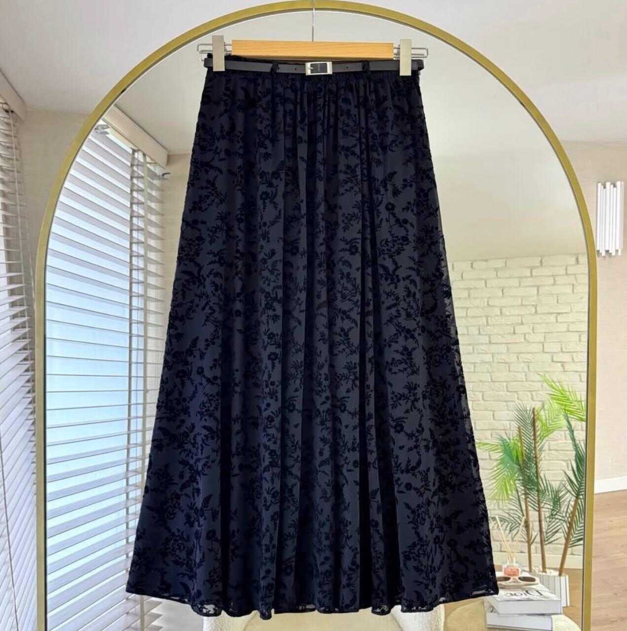 695 PLİSELİ LASTİKLİ ETEK LACİVERT