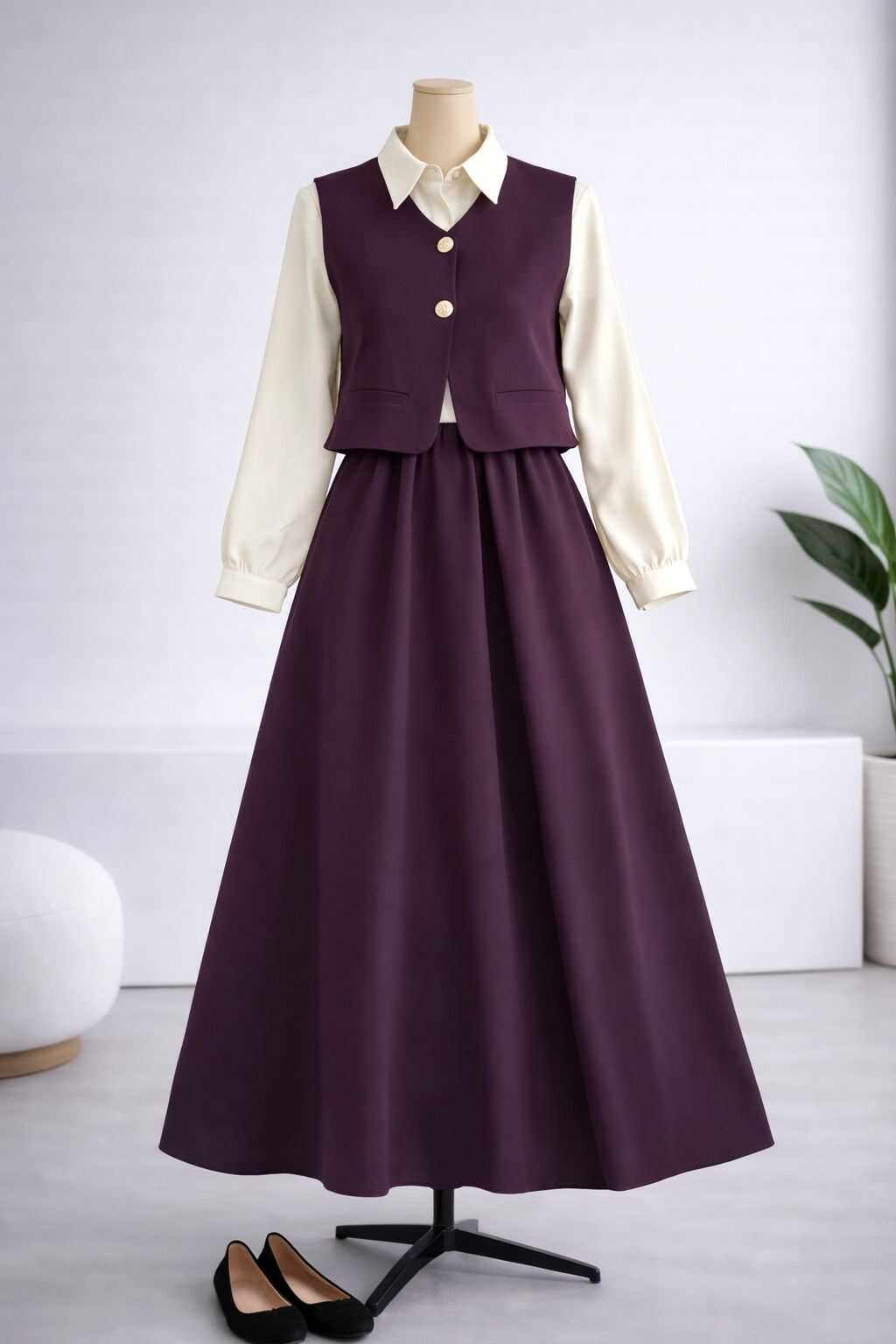 Kod 24-312 KUMAŞ KREP TAKIM KAHVERENGİ