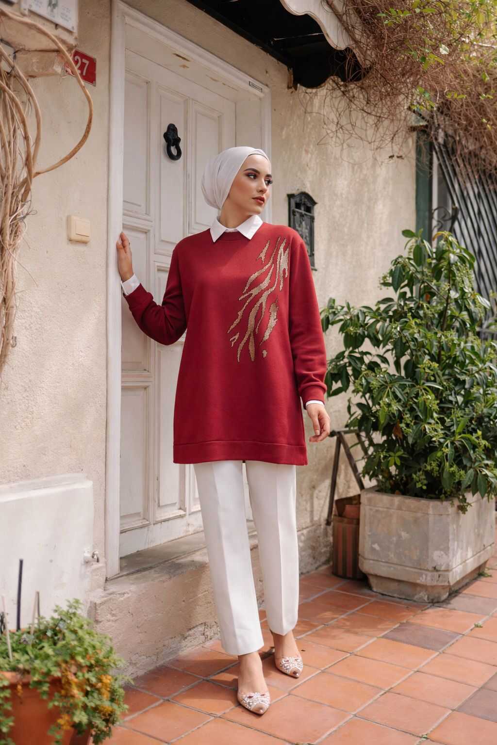 111 TAŞLI TUNİK KIRMIZI