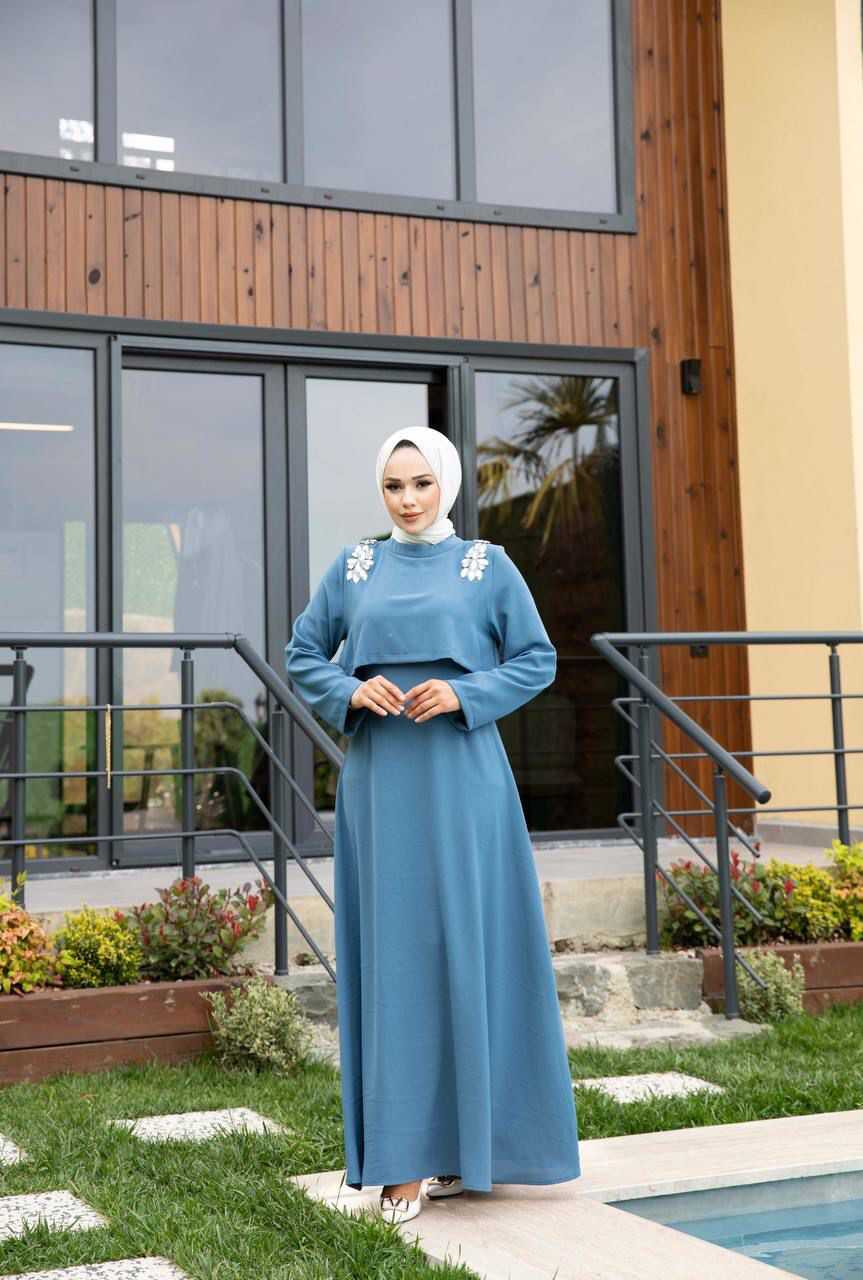 24312 KREP ŞİFON ASTARLIELBİSE MAVİ