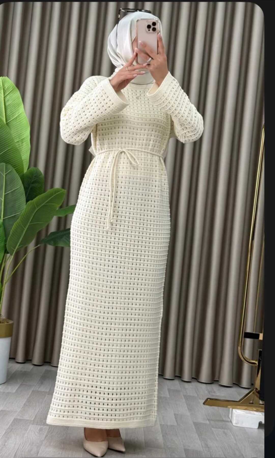 546488 AJURLU ASTARLI TRİKO ELBİSE KREM