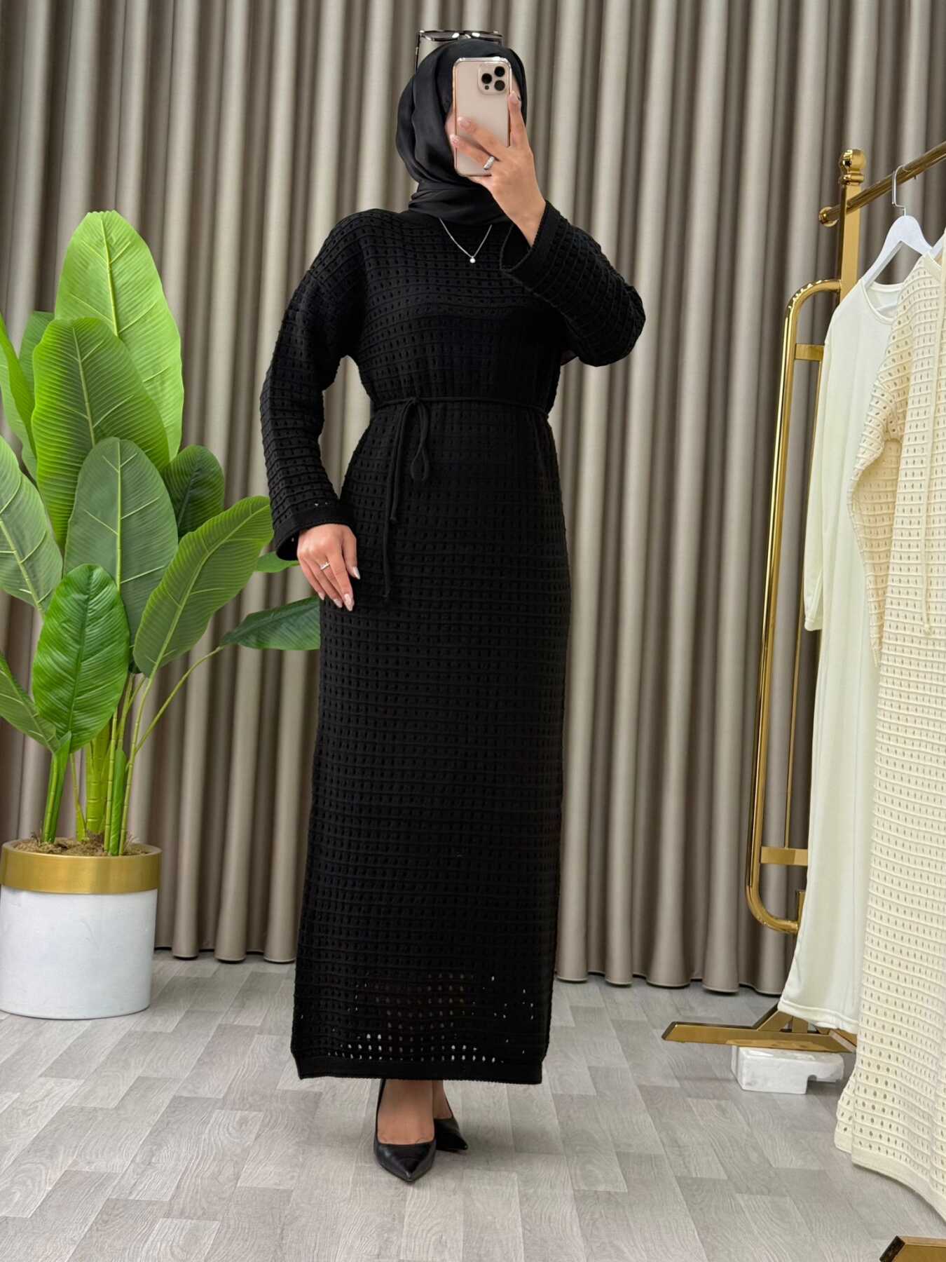 546488 AJURLU ASTARLI TRİKO ELBİSE SİYAH