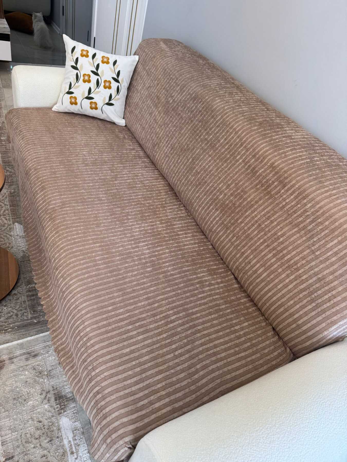 SÜNGERLİ KAYMAZ KADİFE KOLTUK-ÇEKYAT ÖRTÜSÜ KAHVERENGİ